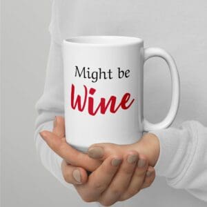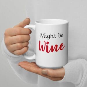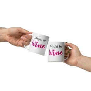 Funny “Might Be WINE” mug for parents—dishwasher safe, microwave safe, & sarcasm approved. Coffee or cabernet, you decide.