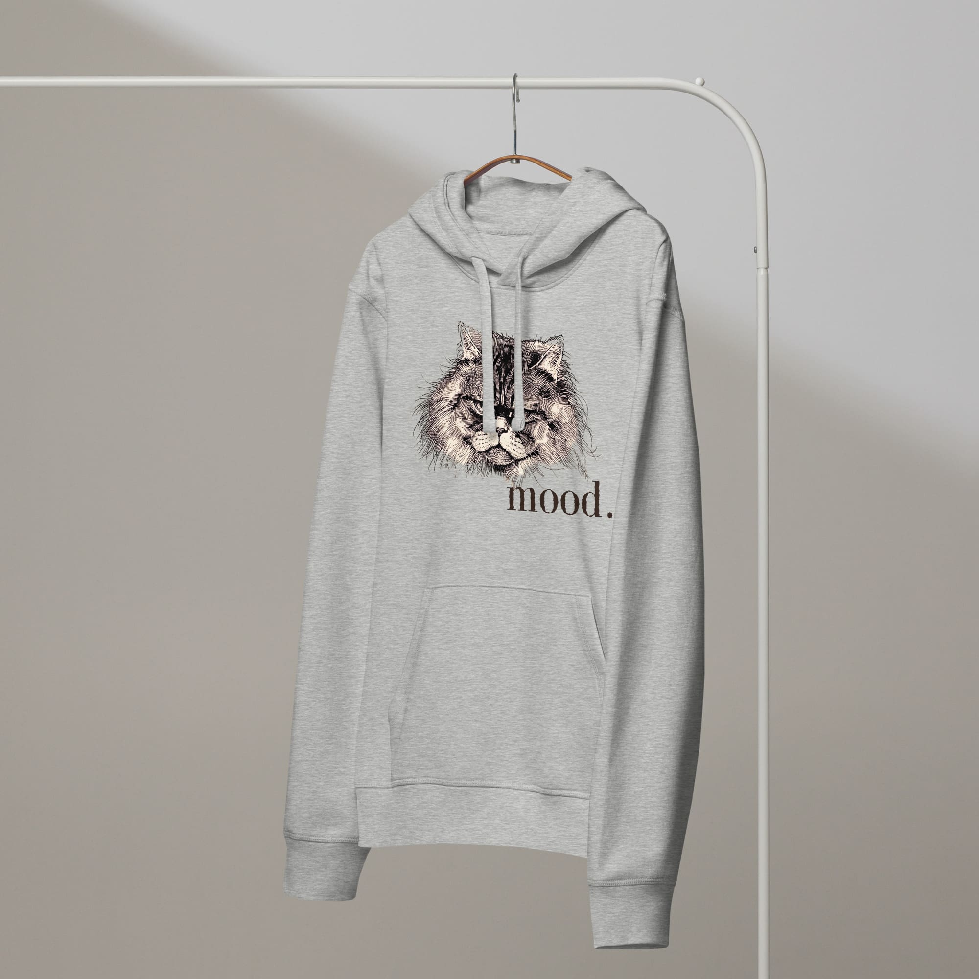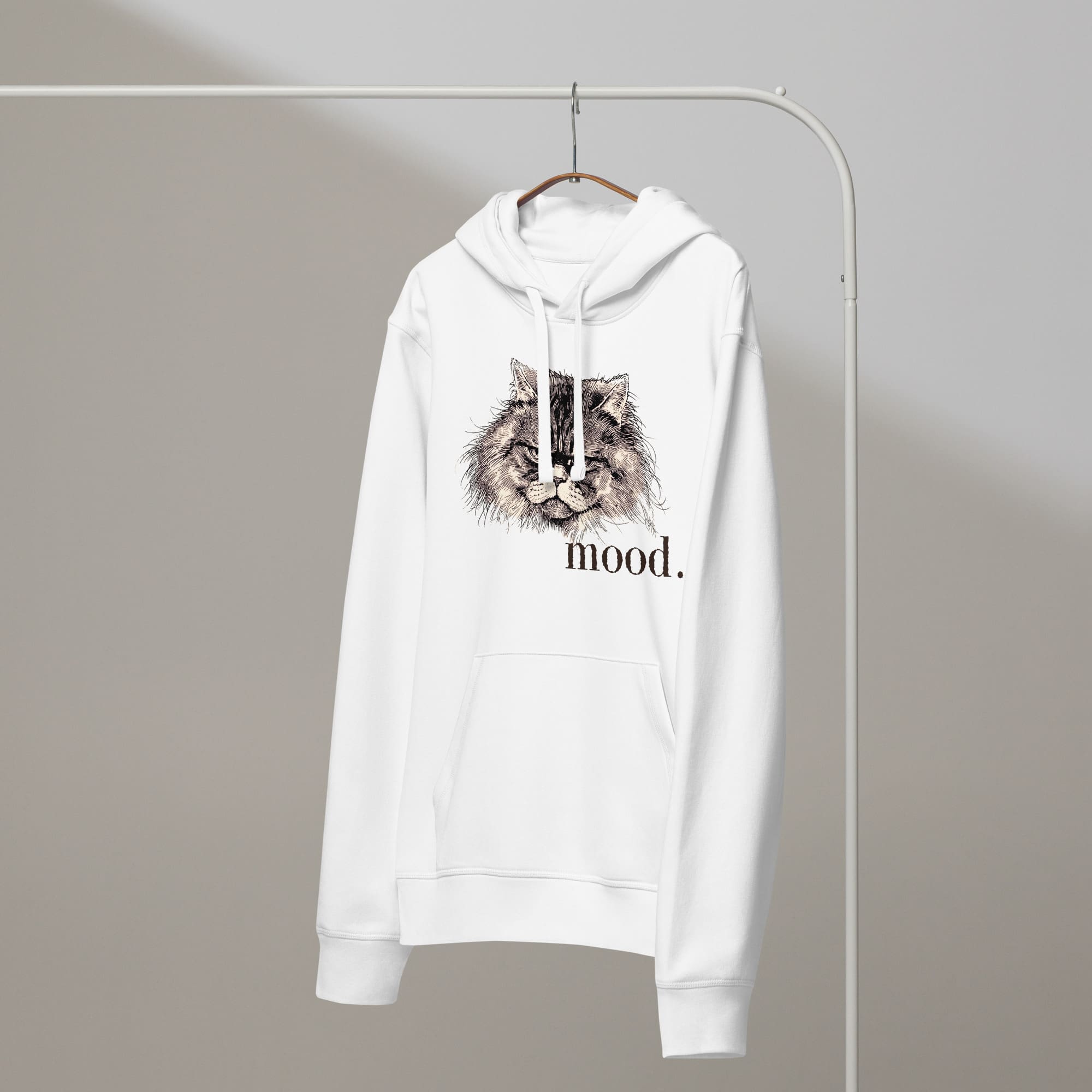 The Moody Cat Organic Hoodie wraps you in mid-weight softness while your inner cat rolls its eyes (adorably) at the world. It’s eco-minded, ridiculously comfy, and built to collect compliments from strangers who “don’t even like cats—except this one.”