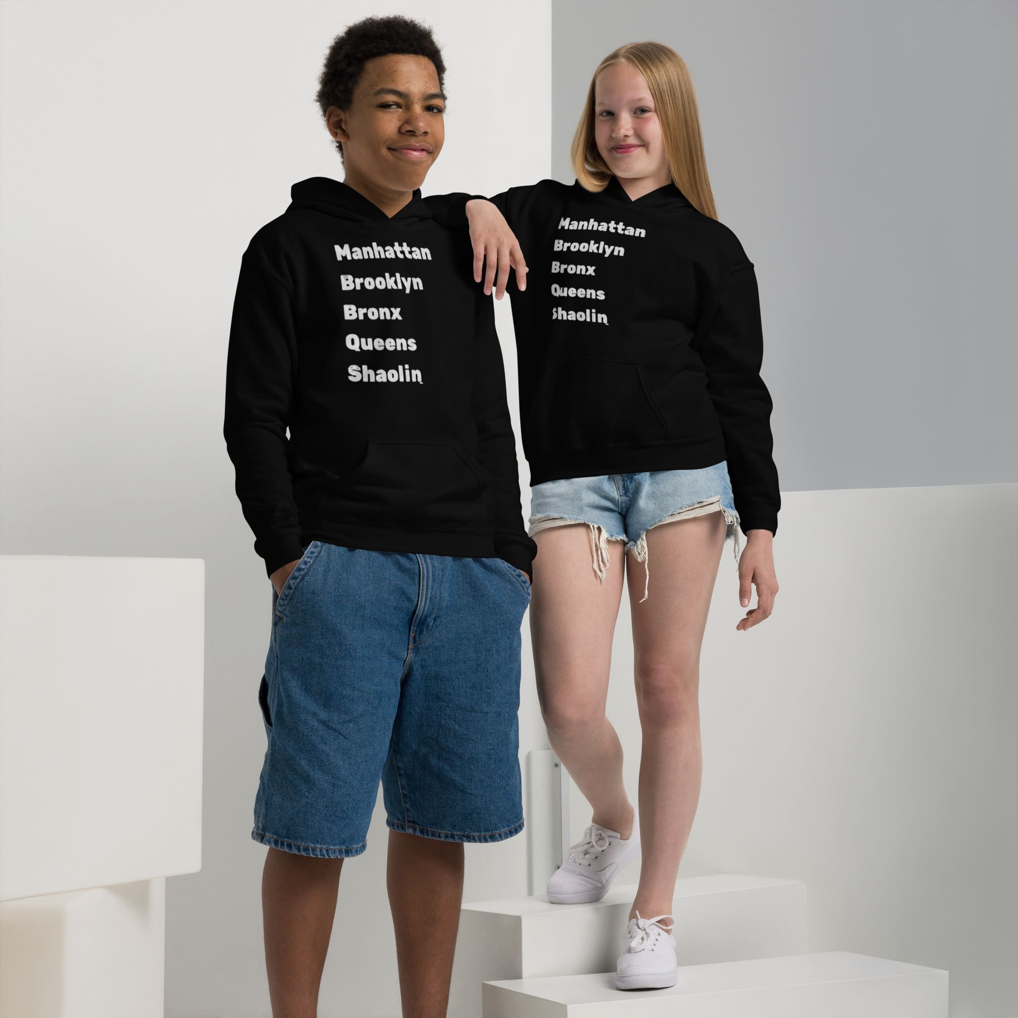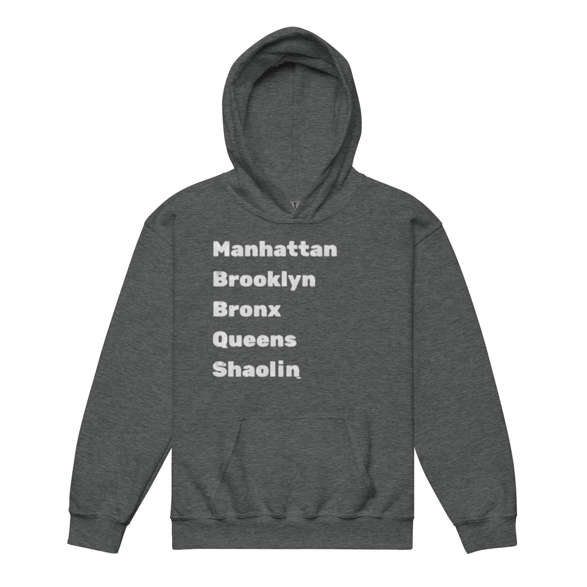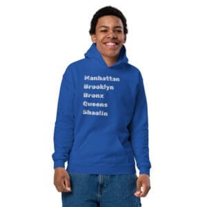 Rep your borough and keep your kid cozy AF. This The Boroughs Youth Hoodie shouts out all five boroughs—including Shaolin, because yes, Wu-Tang is for the children. Built tough with a cotton/poly blend that can survive playground brawls, sibling spats, and the occasional juice box explosion, The Boroughs Youth Hoodie is the perfect mix of style and durability. No drawcords (safety first), but all the street cred. Raise ‘em right—start with the boroughs.
